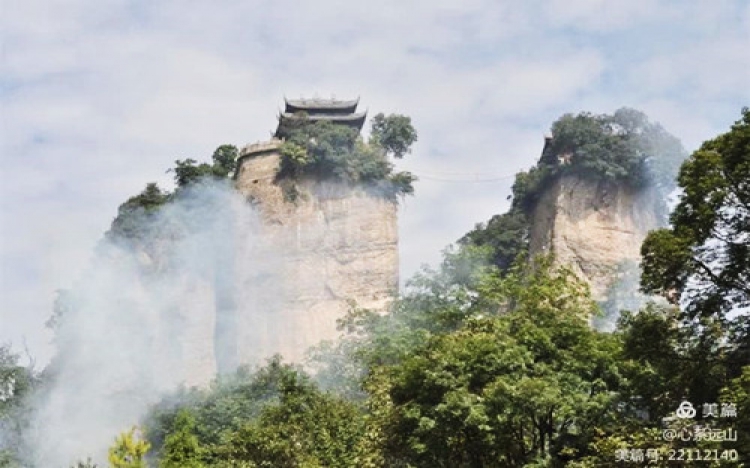 从绵阳出发,经李白故里青莲镇,至武都镇,去窦圌山。快到景区时,远远看到一片青山之上的两座突兀山峰,那就是窦圌山了……